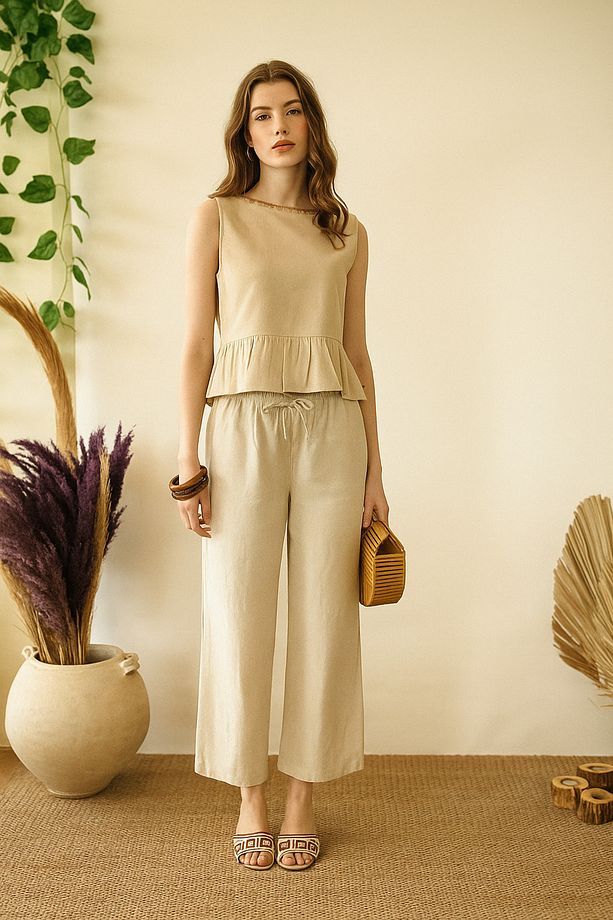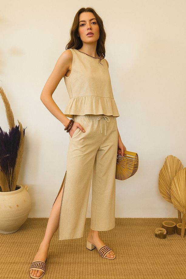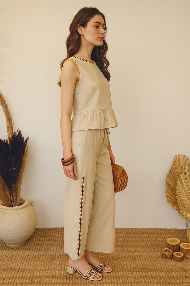 Pamuk Keten Kumaş: Hafif dokusu ve nefes alabilen yapısıyla yaz aylarında ferah bir kullanım sunar.