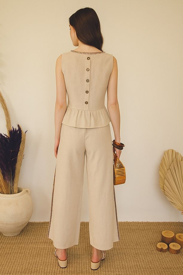 * Arka düğme detayları ve çoban dikişi ile şık bir görünüm kazandırırken, doğal düğmelerle estetik bir dokunuş ekler.